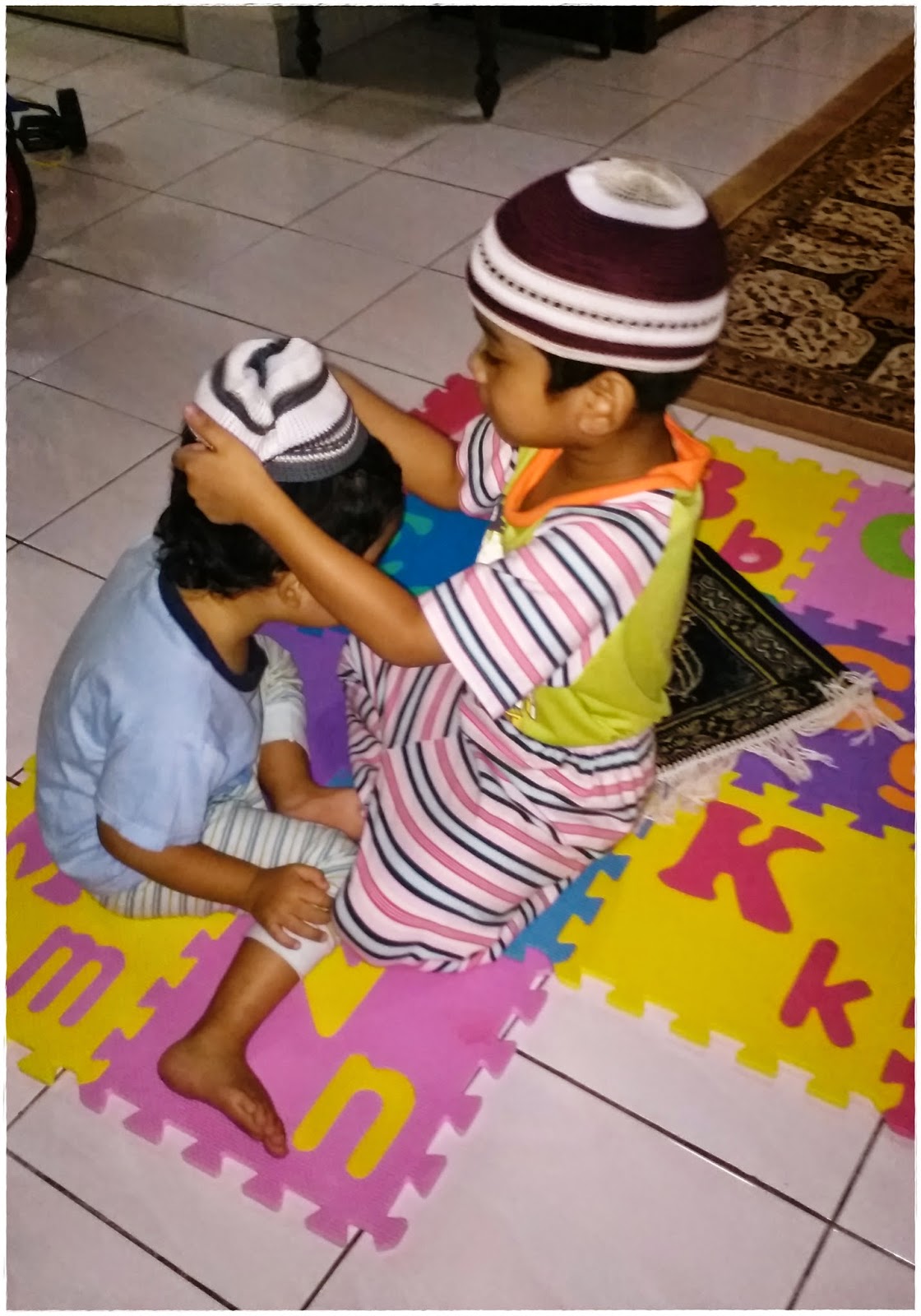 Cuma Khaleef kecik lagi..so bila Khalish nak pakaikan kopiah…
