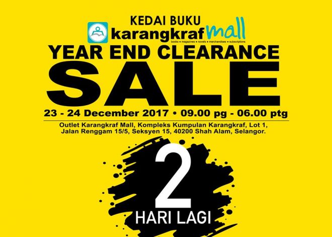 Korang … jualan cuci gudang dah kembali lagi tau a.k.a. #ClearanceYearEndSale . Tak lama dah … weekend ni je .. pleaseeeeee save the date !! Rugi wehh kalau tak pegi Karangkraf Mall ni . Sal memang tunggu sebab murah ya amat . Last year sempat gak pegi dengan anak anak . Hope weekend ni Sal sempat nak singgah sana sebab harga serendah RM1 di Jualan Cuci Gudang Karangkraf Mall ni tau .