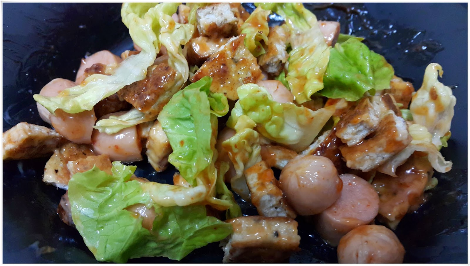 Bila masuk dapur…dapat gak idea…nampak salad…daging burger…sosej…..cukuplah….