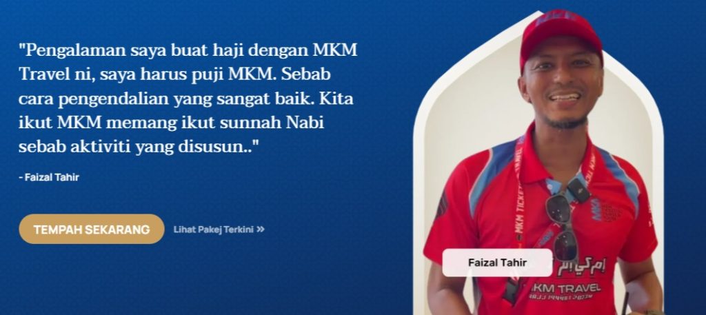 Paling meyakinkan adalah MKM Travel dah lebih 13 tahun berpengalaman dalam menguruskan Jemaah Haji dan Umrah . Ramai jemaah yang memberikan maklum balas sangat berpuas hati dengan kemudahan , pengurusan termasuk layanan yang diberikan oleh para petugas sebelum berangkat , sepanjang berada di Tanah Suci dan apabila selamat kembali ke Tanah Air . 100k lebih jugak la Jemaah Haji dan Umrah yang berjaya diuruskan oleh pihak MKM Travel.
