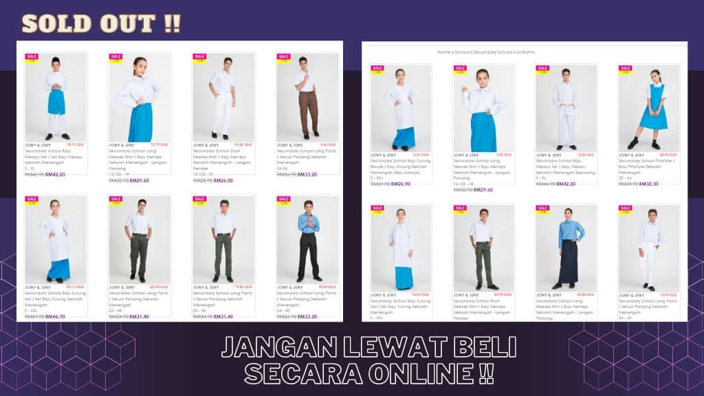Bila beli awal , mudah nak cari saiz untuk anak anak . Korang setuju tak ?? Jangan beli lewat sangat sebab takut saiz habis nanti . Mak mak ni bila saiz uniform atau kasut tak jumpa untuk anak anak , mula la kemurungan ..hehee . Semua nanti serba tak kena