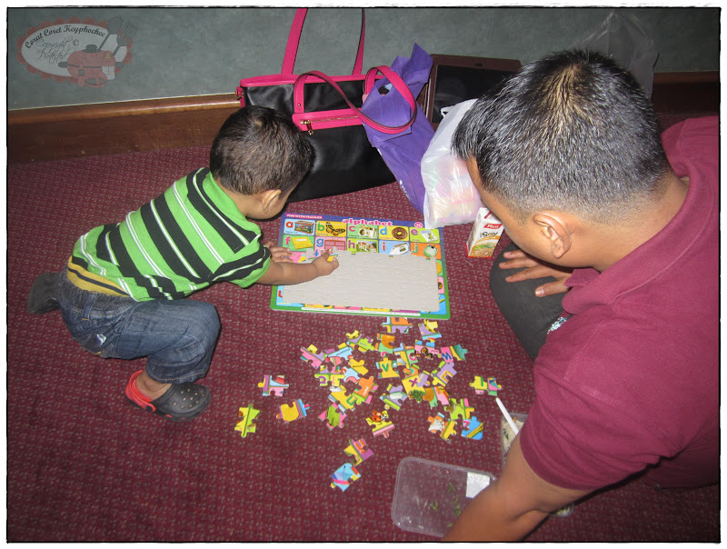 | Khalish & Papa tunggu kat luar auditorium sambil layan jigsaw.. |