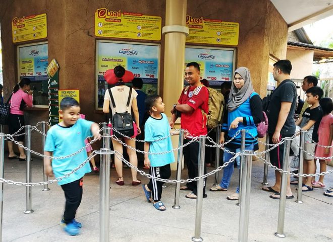 Sesampai je di Sunway Lagoon , keadaan masih terkawal walaupun dah ada pengunjung yang lebih awal dari kami untuk dapatkan tiket masuk . Kena awal sebab nak elakkan kesesakan dan biasala bila anak anak dah nampak air , tak tentu arah jadinya dan kita pun jadi kelam kabut nak kawal .