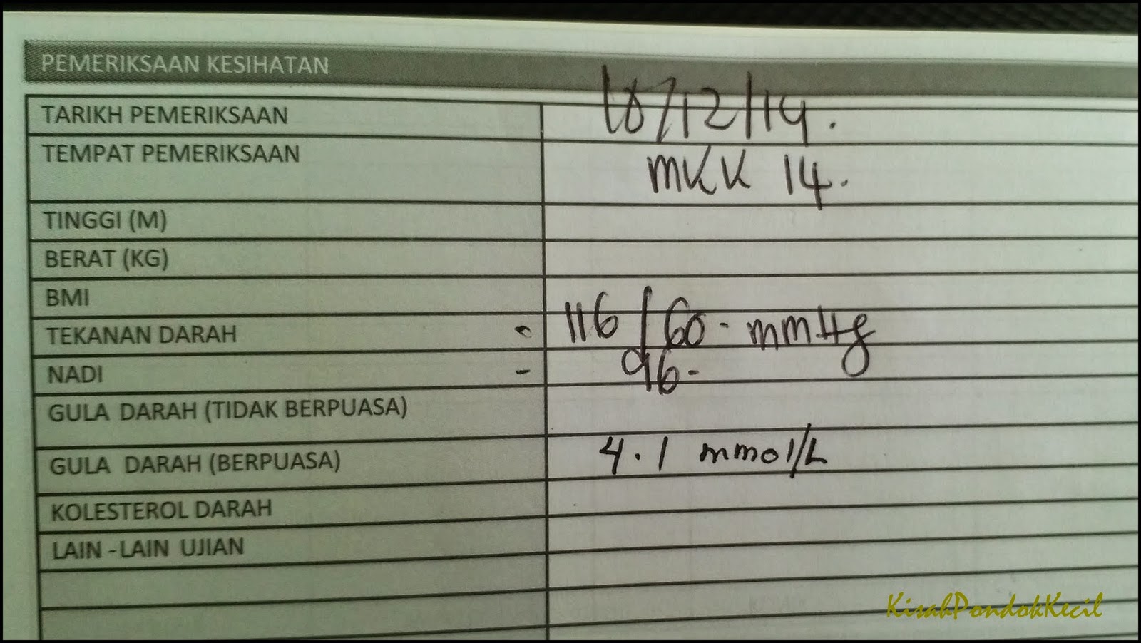 result semuanya ok termasuk BMI…sebenarnya saya takut tekanan darah je..manela tau…